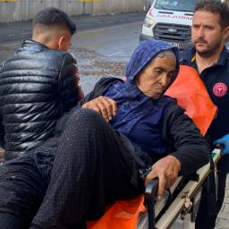 Firefighters were just in time to save a woman who uses a motor wheelchair from drowning in flood waters in Turkiye.