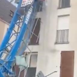 Video shows towering construction cranes being brought down by a tornado in northern France, killing one person.