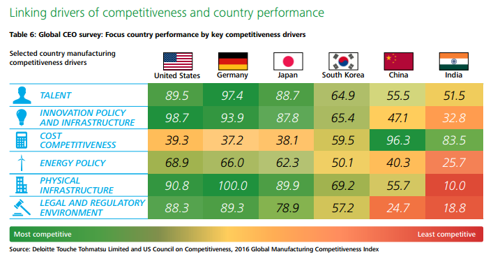 Global Manufacturing competitiveness was analyzed by Deloitte