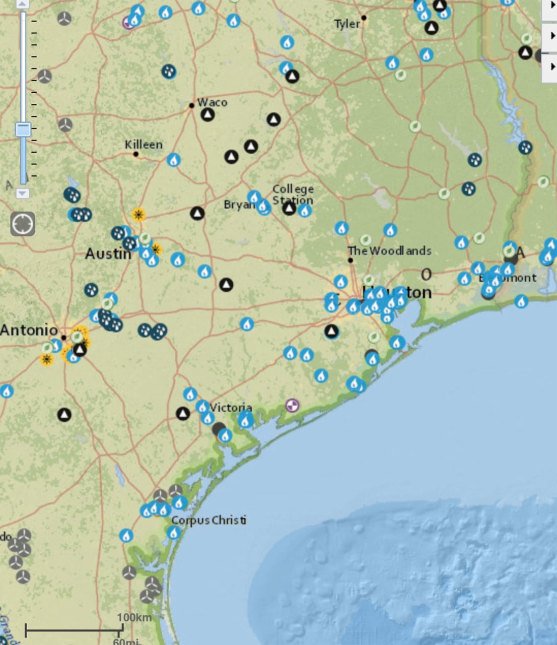 Power plants in Harvey's direct footprint as of August 25, 2017. Source: https://www.eia.gov/special/disruptions/