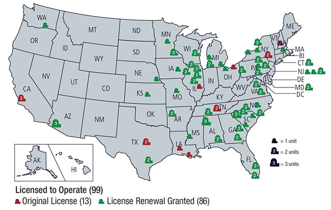 2. License renewals granted for operating nuclear power reactors. Source: NRC