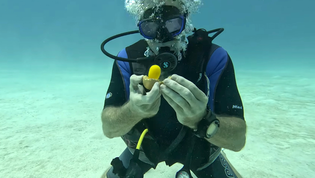 Diver Cracks Egg While 39 Feet Underwater