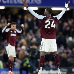 Aston Villa win 2-1 at Chelsea in the English Premier League, while leaders Arsenal and Man City maintain pace.