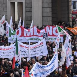 Demonstrators in Milan protest United State's ICE unit role at Milano-Cortina 2026 Winter Olympics.