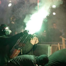 Anti-government protesters in Albania hurled petrol bombs and fireworks at police.