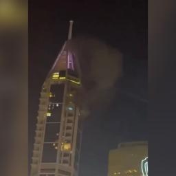 Video shows smoke rising from a Dubai tower after shrapnel damaged the residential building and set a car on fire.