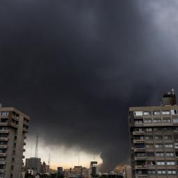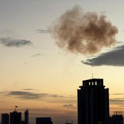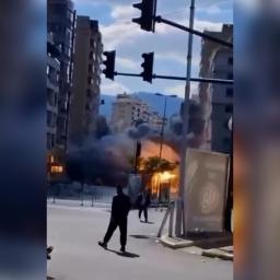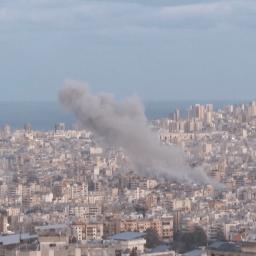 Smoke rose over Beirut after an Israeli strike hit an apartment in the Ramada Hotel building in the Raouche district.