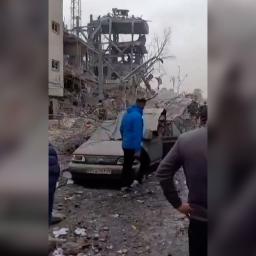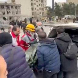 Rescuers search rubble and aid injured in Tehran's Resalat neighbourhood after a reported Israeli strike.