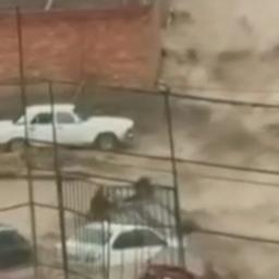 Footage shows floodwaters washing away and submerging vehicles and homes in Makhachkala, Russia.