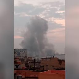 Thick plumes of smoke rise over Mosul after air strikes targeted sites belonging to Iraq's Popular Mobilisation Forces.