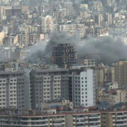 Smoke billows above buildings in Beirut's southern suburbs after Israeli strike.