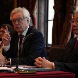 Demonstrators jeered and shouted at Israeli President Isaac Herzog as he left an event in London.