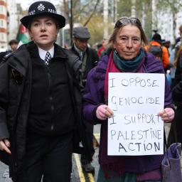 Protesters in the UK have been arrested for holding up signs that say I oppose genocide, I support Palestine Action'.