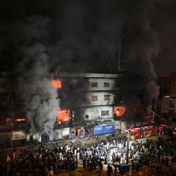 Pakistani leaders offer condolences as firefighters battle a major blaze in Karachi.