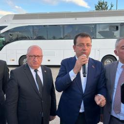 Ekrem Imamoglu of the main opposition party was speaking atop campaign bus when a large group began throwing rocks.