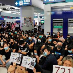 A crowd of pro-democracy protesters in Hong Kong staged a silent sit-in at the Yuen Long MTR station on Wednesday evening, marking a month since a group of suspected organized crime group members violently attacked demonstrators there.