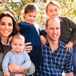 William and Catherine, the Duke and Duchess of Cambridge, have chosen an autumnal photo of their family sitting on a tree trunk for this year's Christmas card, which was made public on Friday.