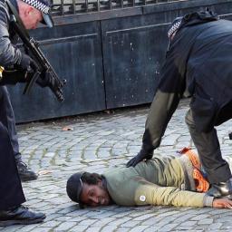 Police officers Tasered and arrested a man inside the entrance to the grounds of the UK's Houses of Parliament in Westminster on Tuesday.