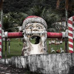 Driving through Brazil to Rio de Janeiro, you might spot an eerie sight on the side of the road: a derelict gang of Santas, lying abandoned surrounded by palm trees and greenery.
