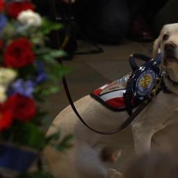 Sully, a Labrador who served as President George H.W. Bush's service dog, visits the former President as he lies in state in the US Capitol Rotunda.