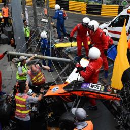Sophia Floersch is undergoing surgery for the spinal fracture she suffered in a horrifying airborne crash at Sunday's Formula Three Macau Grand Prix.