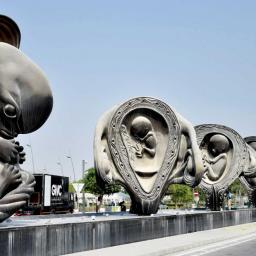 Conceptual artist Damien Hirst is not one to shy away from a statement -- and a series of bronze sculptures of a gestating fetus gracing the entrance to a new hospital in Qatar is proof.