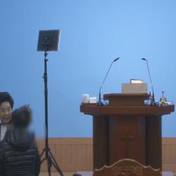 Standing in front of her parish in a bright yellow jacket, Shin Ok-joo holds back tears. Her voice takes on a tone of both anger and sadness.