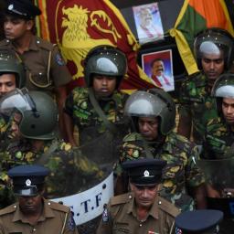 One person has been killed in Sri Lanka after the bodyguards of a deposed government minister opened fire on a crowd of protestors amid a worsening constitutional crisis.