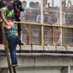 Rosalin Guillermo climbed through a hole in the fence of the bridge and took hold of the ladder.