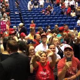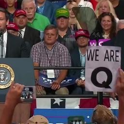 Among the attendees of President Trump's rally in Florida were people holding up signs promoting an online right-wing conspiracy persona -- who's been targeting movie stars and the Democratic Party alike.