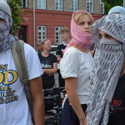 Hundreds of demonstrators gathered in the Danish capital of Copenhagen wearing burqas and other face veils Wednesday to protest a law against facial coverings, saying the legislation oppresses some Muslim women and violates their rights.