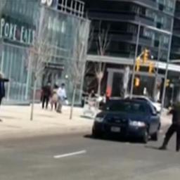 Witness video appears to show an individual in a standoff with police near the scene where a van struck pedestrians in Toronto.