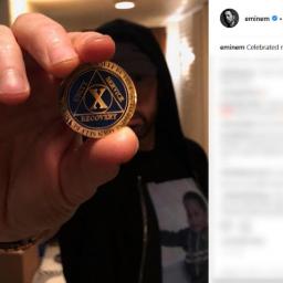 Eminem celebrated 10 years of sobriety as the rapper shared a photo of his 12-step milestone chip online.