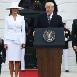 First lady Melania Trump turned heads in her white chapeau Tuesday as the administration hosted its first official state visit with France.