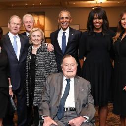 A touching photograph of several generations of presidents paying tribute to the late Barbara Bush is being warmly and widely circulated on social media.