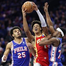 Jalen Johnson recorded 32 points, 10 rebounds and five assists as the Atlanta Hawks posted a 117-107 road win over the Philadelphia 76ers on Thursday.