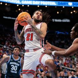 No. 5 Houston and No. 14 Kansas each showed their mettle in their respective Big 12 tournament openers on Thursday.,Neither finished the regular seaso
