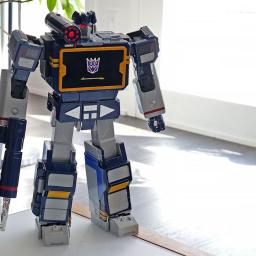 There's just something magical about a robot that can convert into a car, tank or plane. It seems that Hollywood agrees as there are several major franchises based around that concept. As someone who grew up in the 80s and 90s, Transformers hold a special place in my heart, despite Michael Bay's best efforts at tarnishing its legacy. I spent countless hours as a kid playing with Hasbro and Takara's plastic figures, but there was one type of toy I always wanted but never got: a robot that could transform on its own just like the ones I watched on TV. That changed a few years ago when Robosen launched its line of officially licensed auto-converting models, and from what I've seen, its latest release featuring Soundwave might be its best yet.Design: More than meets the eyeAs a follow-up to previous bots featuring Optimus Prime, Megatron, Bumblebee, Grimlock and others, Soundwave was a superior choice, and Robosen has done a more than respectable job of bringing him to life. Not only can he spit out classic lines performed by original voice actor Frank Welker, both his robot and alt modes are a vision straight out of the first-generation (G1) cartoon. Everywhere you look, there are a ton of lovingly crafted details like the working eject button for the cassette slot and all sorts of lights. Robosen's head sculpt is spot on, and it even includes additional LEDs for his eyes and shoulder cannon. Granted, there is a bit of kibble (aka what fans call out of place parts leftover from transformation), like hands that don't properly fold away when Soundwave turns into a boombox, but that's really nitpicking. Between his incredibly accurate design, vocoder-powered vocals and an imposing stature that stands at around 14 inches tall, there's no way you can call this rendition of Soundwave uncharismatic. A simply superior head sculpt. Sam Rutherford for Engadget However, the real magic happens when you turn him on (there's a little button on his back) and say "Hey, Soundwave." From here, you can use more than 50 different voice commands to boss him around like you're the leader of the Decepticons. This includes asking him to say iconic lines, respond to an Autobot attack or just wishing someone a happy birthday. Naturally, the most impressive request is asking him to transform, at which point 28 high-precision servo motors and multiple motion sensors coordinate. This allows Soundwave to convert from boombox mode to robot and back again, complete with the required sound effects. Even as a jaded adult, there's still something incredibly enchanting about watching a Transformer actually transform on its own. But that pales in comparison to the one-of-a-kind reaction my four-year-old son gave me when I repeated the process for him. There was a joy in his face I'm not sure a grown-up can truly express, as he gets to experience this without knowing this bot costs a cool $1,400. Robosen's free mobile app features a D-pad so you can easily tell the robot where to walk. Sam Rutherford for Engadget While testing Soundwave's various commands, I did notice that his voice recognition can be somewhat hit or miss. I found that even a little background noise can cause issues. To be consistently heard, you have to speak louder than you think you should. The real key is being very deliberate with a sharp "Hi" or "Hey" to activate Soundwave's wake phrase properly. Alternatively, if you prefer not to yell at your robots, there's also a free companion app that allows you to send commands by simply pressing a button, which was super easy to set up and quickly became my preferred control scheme. Here is Robosen's version of Soundwave (right) compared to the Studio Series 86 figure (left). Sam Rutherford for Engadget In addition to making it easier to get Soundwave to walk around (it's much more fun to use a virtual D-pad than yell "Walk forward" all the time), the app also provides a more straightforward way of discovering what he can do while reducing the ambiguity of voice commands. There are handy buttons for all his voice lines and poses, plus there's a toolkit for creating some of your own. You can also download more from the app, though there weren't any for me to test out because Soundwave wasn't officially out yet at the time of writing. There's even a Mini Theatre mode that allows the bot to perform short skits, and if you're lucky enough to own some of Robosen's other Transformers toys, like Megatron, some of these scenes can even be performed in tandem. I don't think any Autobots have a chance against a Soundwave this big. Sam Rutherford for Engadget One awkward thing about Roboen's more sophisticated approach to toy robots is that Soundwave loses some of his structural integrity when his motors are off. For example, when you power him down in robot mode, he bends over backwards and gets stuck halfway between his humanoid and boombox forms. I assume this is to prevent him from falling over, which is a good thing; it just looks kind of weird. On the flip side, if you pick him up while in stereo mode, his limbs tend to droop. However, perhaps the biggest downside to Soundwave is one inherent to his design. Because his alt mode is a boombox instead of a vehicle like Optimus, Bumblebee and others, he can't pull double duty as a remote control car. But what Soundwave lacks in mobility, he makes up for with his signature acoustic skills.Audio: Not just a bot, he's a real boombox too From the front, Soundwave's boombox alt mode looks damn near perfect. Sam Rutherford for Engadget Soundwave turning into a boombox that can't play music just wouldn't make sense. Thankfully, that's not an issue as this bot's buttons aren't just for show. Hitting Play lets you listen to original tracks from the G1 cartoon, complete with the ability to pause or skip to the next track. You can also hold the record button to save a personal message for later, though I found this feature has a bit of a learning curve as Soundwave tends to cut out 