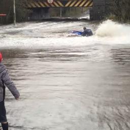 Andy Johnson rides a jetski under a railway bridge and past a flooded bus stop on Euxton Lane near Chorley, Lancashire, while locals watch. Kieron McLaughlin filmed the moment on New Year’s Eve after canoeing down the waters. The clip has since picked up more than 100,000 views on Facebook Continue reading...