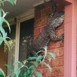 A 1.5m long goanna gave a man a fright when it scaled the outside of his home. Eric Holland had been working in his shed in Thurgoona, New South Wales, when he saw the unexpected visitor darting across his property. Holland, who managed to snap a picture of the goanna, said: “I saw movement as I came out of the shed and I had a look and thought, bloody hell what is this thing? When I recovered from the shock I went inside and got a camera.†Goannas are often found in eastern Australia but generally live in the bush. They are typically wary of humans but are considered potentially dangerous on account of their bite. This one, thought to be a lace monitor goanna, hasn’t been spotted since it scampered away. A spokesman for the NSW Office of Environment and Heritage said the lace monitor could grow up to two metres in length and weigh up to 20kg. Continue reading...