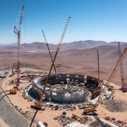 Ein neues Bild zeigt den aktuellen Stand der Bauarbeiten am europäischen Extremely Large Telescope in Chile. Die gigantischen Ausmaße sind sichtbar.