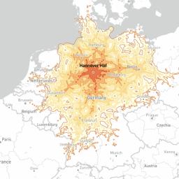 Ein Entwickler aus Paris zeigt mittels Grafik, wie weit man in Europa binnen 5 Stunden mit dem Zug kommt. Die Daten kommen von der Deutschen Bahn.