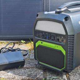 Der Solargenerator PG1 hat zwei 230-V-Steckdosen, 462 Wh Kapazität, 500 W Dauerleistung. TechStage hat die kompakte Powerstation mit Lautsprecher getestet.