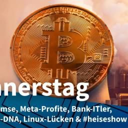 Krypto-Mining in New York ausgebremst + Metas Gewinn sinkt + IT-Gehälter bei Banken + Meteorit mit DNA- & RNA-Spuren + Root-Lücke in Linux + #heiseshow zum DSA