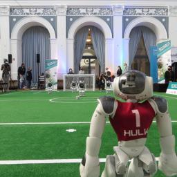 Schöne Spielzüge und ein perfekter Querpass sichern dem Team aus Bremen den Sieg. Dank neuer Kalibrierung finden sich die Roboter auf dem Feld selbst zurecht.