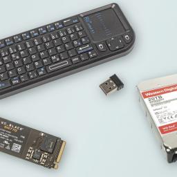Eine schnelle PCIe-4.0-SSD für Gamer und eine NAS-Festplatte mit Kapazitätstrick von Western Digital sowie eine treiberlose Mini-Tastatur mit Touchpad von Rii.