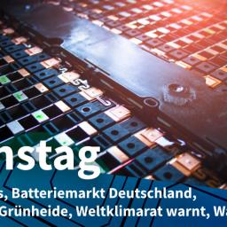 Auto-Akkus als Puffer für das Stromnetz + Deutschland als Batterie-Musterknabe + IG Metall versus Tesla + Weltklimarat mahnt + Beispielloses Waldsterben