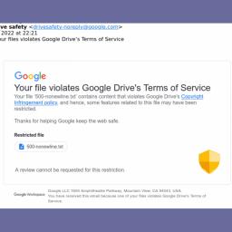 In simplen Nummern erkennt Google Drive Urheberrechtsverletzungen. Sogar eine Textdatei mit lediglich der Ziffer 1 wurde gesperrt. Fehlermeldung unmöglich.
