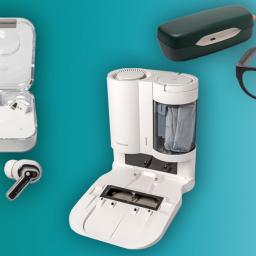 Nothings Ear 1 Kopfhörer mit ANC, Roborocks Entleerungsstation für den Saugroboter S7 und die Audiobrille Fauna Smart Glasses für Videomeetings.