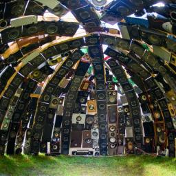Der Audio Igloo, ein begehbares Klang-Kunstwerk aus 300 Lautsprecherboxen vom Sperrmüll, reagiert auf Besucher mit interaktiv gesteuerten Melodien und Klängen.